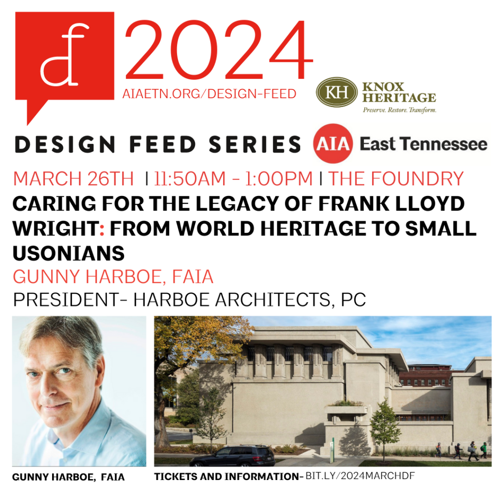 Speaker: Gunny Harboe, FAIA, Founder of Harboe Architects, PC. Description: Frank Lloyd Wright was arguably the most influential American architect of the 20th Century. From his early works such as